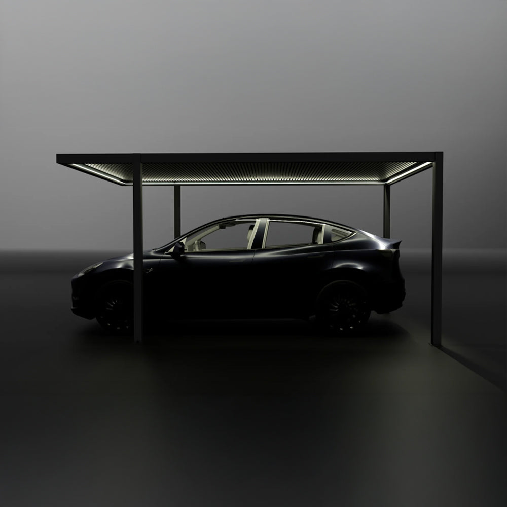 Wiata samochodowa Esti&Esta to elegancka i solidna ochrona Twojego pojazdu - zaprojektowana tak, by harmonijnie łączyć funkcjonalność z nowoczesnym designem. Wykonana z aluminiowego stelaża i wykończona stalowym dachem, stanowi trwałe zabezpieczenie samochodu przed deszczem, śniegiem i słońcem, jednocześnie doskonale komponując się z otoczeniem domu. Dzięki zintegrowanemu oświetleniu LED z czujnikiem ruchu, wiata staje się funkcjonalna również po zmroku, zapewniając bezpieczeństwo i wygodę użytkowania.