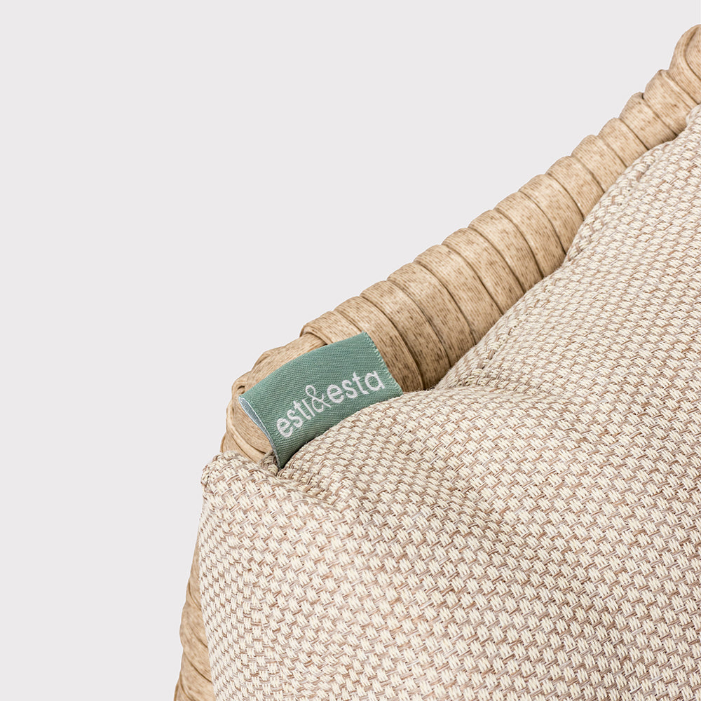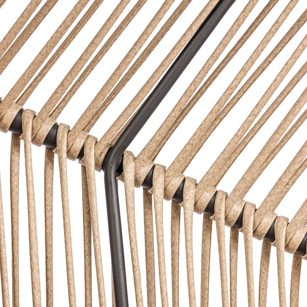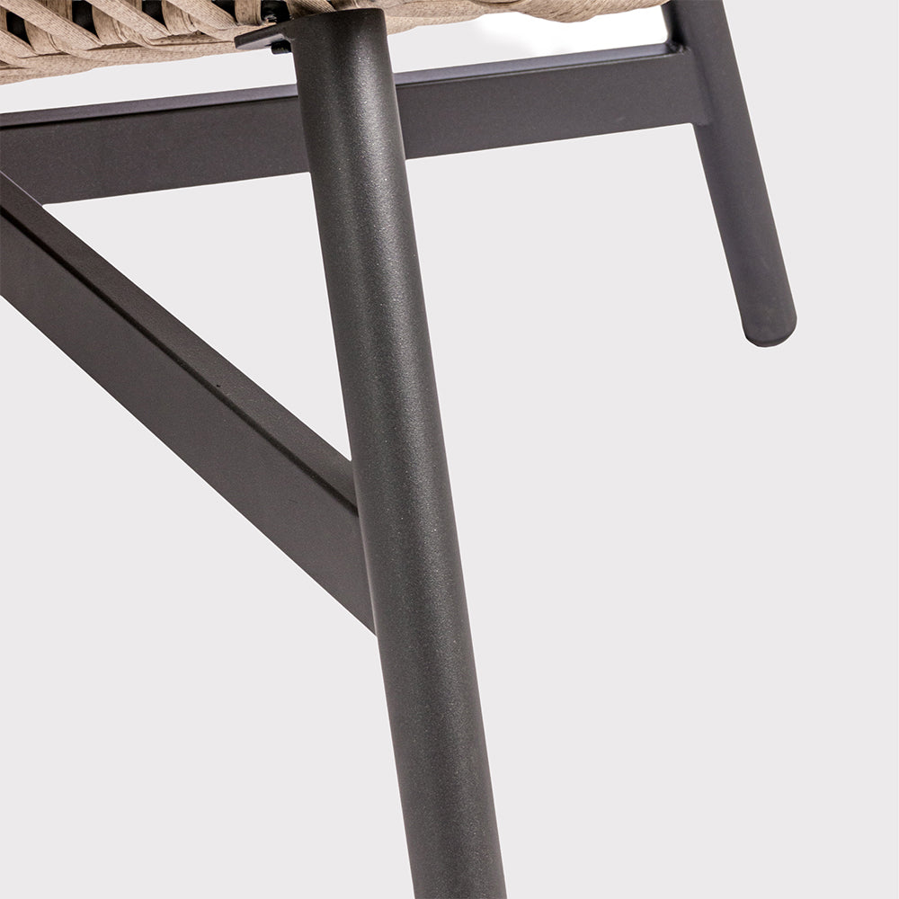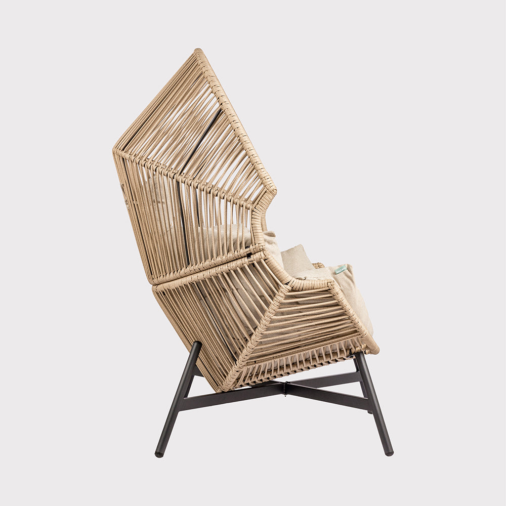 Fotel ogrodowy dla jednej osoby, który łączy w sobie styl i wygodę. Optymalnie wyprofilowane siedzisko z miękkimi poduchami umożliwia komfortowy relaks. Zestawienie splotu polirattanowego z delikatnymi nóżkami w kolorze drewna jest eleganckie i ponadczasowe.