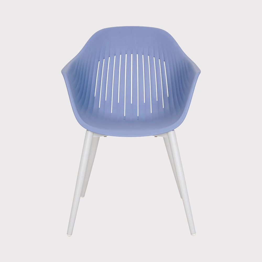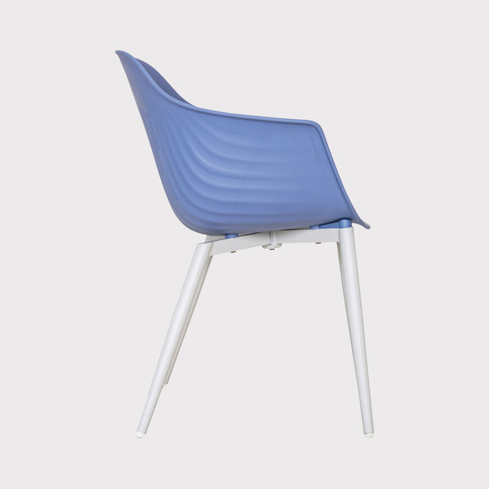 Krzesło Ballena w kolorze niebieskim to połączenie nowoczesnego designu, wygody i ekologicznego podejścia. Siedzisko wykonano z tworzywa pochodzącego z recyklingu, potwierdzonego certyfikatem GRS (Global Recycled Standard), dzięki czemu mebel jest przyjazny środowisku. Głęboki, niebieski kolor wprowadza do aranżacji nutę świeżości i doskonale komponuje się z nowoczesnymi ogrodowymi zestawami.