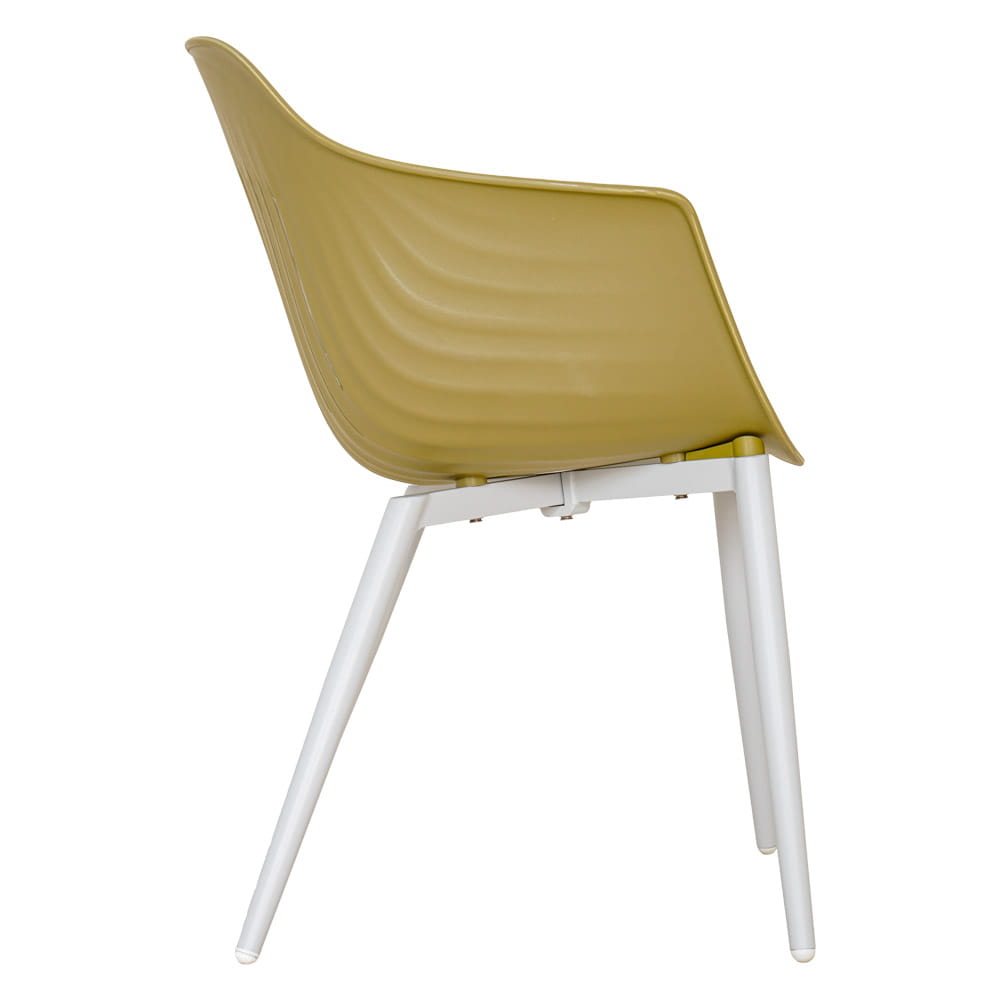 Krzesło ogrodowe Ballena w kolorze oliwkowym to połączenie nowoczesnego stylu, wygody i ekologicznego podejścia. Wykonane z tworzywa sztucznego pochodzącego z recyklingu, posiada certyfikat GRS (Global Recycled Standard) - potwierdzenie dbałości o środowisko i zrównoważonej produkcji. Delikatny, oliwkowy odcień wprowadza do przestrzeni relaksu naturalną harmonię i świetnie komponuje się z zielenią ogrodu.