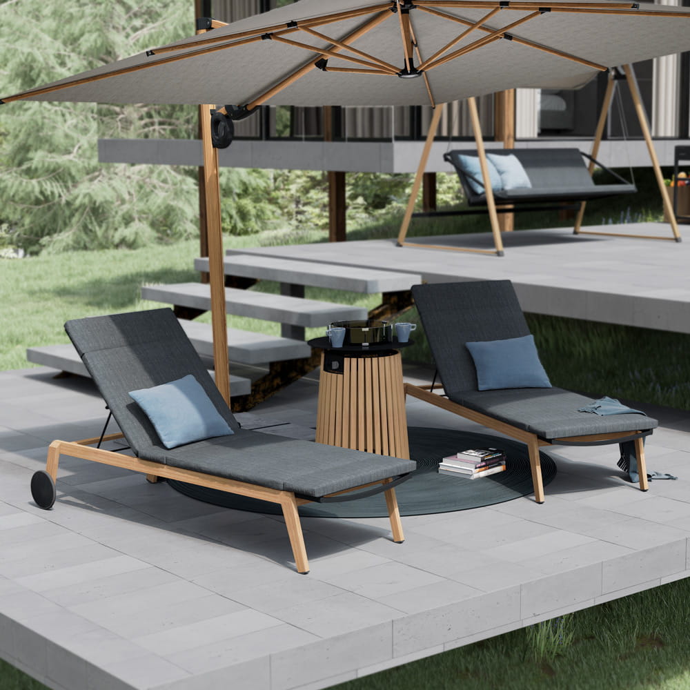 Leżak ogrodowy z regulowanym zagłówkiem i miękką poduszką na całej powierzchni zapewnia komfortowy wypoczynek. Wyposażony w duże kółka, co ułatwia ustawienie go w dowolnym miejscu. Minimalistyczną konstrukcję można połączyć z wieloma dodatkami.