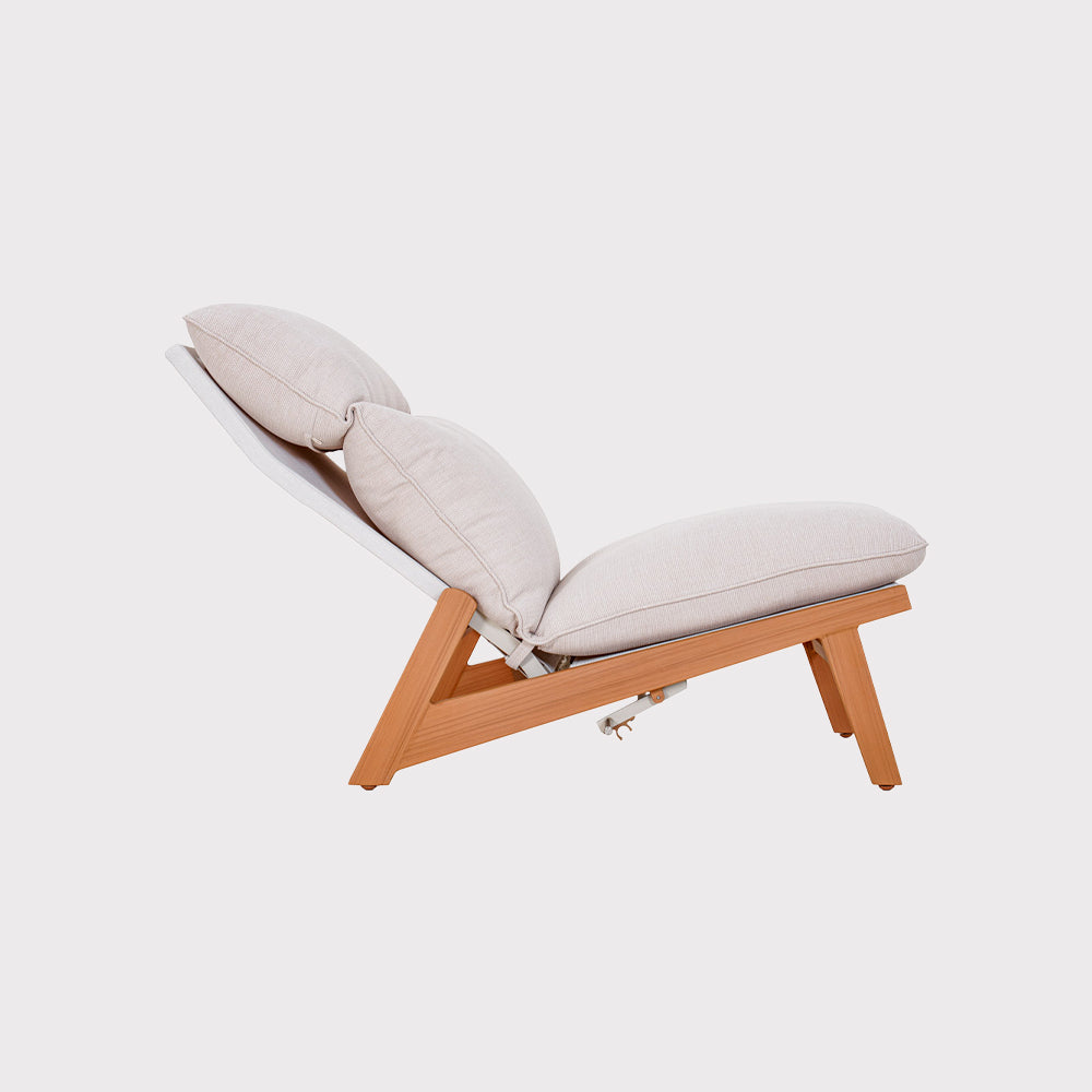 Leżak ogrodowy Kalem z podnóżkiem to eleganckie i funkcjonalne rozwiązanie do strefy wypoczynku na świeżym powietrzu. Regulowane oparcie pozwala dopasować pozycję do indywidualnych potrzeb, a podnóżek zapewnia pełen komfort relaksu. Konstrukcja z aluminium malowanego proszkowo jest odporna na korozję i warunki atmosferyczne, a nogi w technologii heat transfer dodają całości naturalnego charakteru. Miękkie poduszki z tkaniny Olefin są przyjemne w dotyku, odporne na blaknięcie i wilgoć, dzięki czemu leżak pozostaje estetyczny i wygodny przez wiele sezonów. To stylowy wybór na taras, do ogrodu lub przy basen.