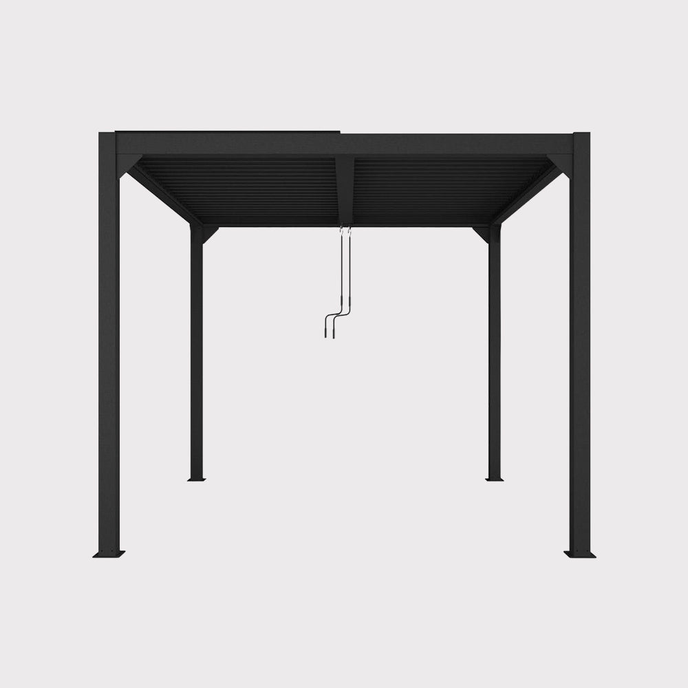 Pergola ogrodowa Luxe 3×3 m to kompaktowe i stylowe zadaszenie, idealne do mniejszych tarasów i ogrodów. Wykonana w całości z aluminium, cechuje się odpornością na korozję oraz trwałością, dzięki czemu posłuży przez wiele sezonów. Manualnie regulowany dach z aluminiowych lameli podzielonych na dwie strefy umożliwia precyzyjne dopasowanie ilości światła i cienia. System odprowadzania wody WaterSpill zapewnia komfort użytkowania niezależnie od pogody, a stabilne nogi z otworami montażowymi pozwalają solidnie przymocować konstrukcję do podłoża. Elegancki design i antracytowy kolor sprawiają, że pergola doskonale komponuje się z nowoczesnymi aranżacjami tarasu.
