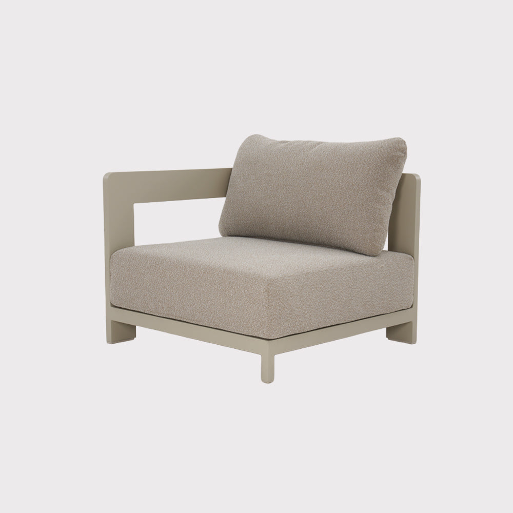 Zestaw mebli ogrodowych Lumo to synonim komfortu i elegancji w nowoczesnym wydaniu. Jego aluminiowa konstrukcja o subtelnej formie i idealnie wyważonych proporcjach tworzy przytulną strefę relaksu, która zachwyca od pierwszego spojrzenia. W skład kompletu wchodzi aż dziewięć elementów, w tym modułowe fotele i dwa stoliki, które można dowolnie aranżować według potrzeb. Miękkie, wysokie poduszki w jasnym odcieniu gwarantują wyjątkowy komfort wypoczynku – niezależnie od tego, czy spędzasz poranek z kawą, czy wieczór w gronie bliskich.