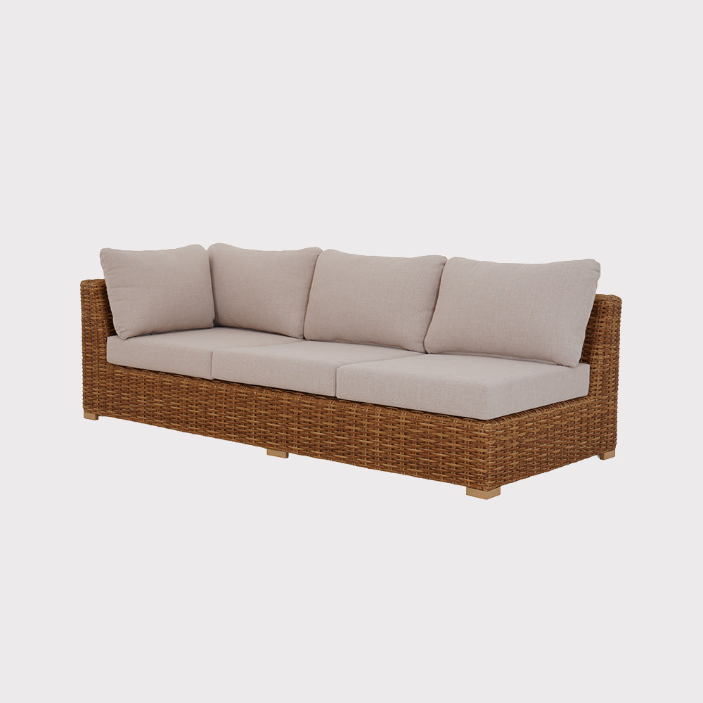 Aluminum structure, semi-circular synthetic rattan finish and waterproof Olifen fabric cushions – solutions designed for outdoor use and easy maintenance.