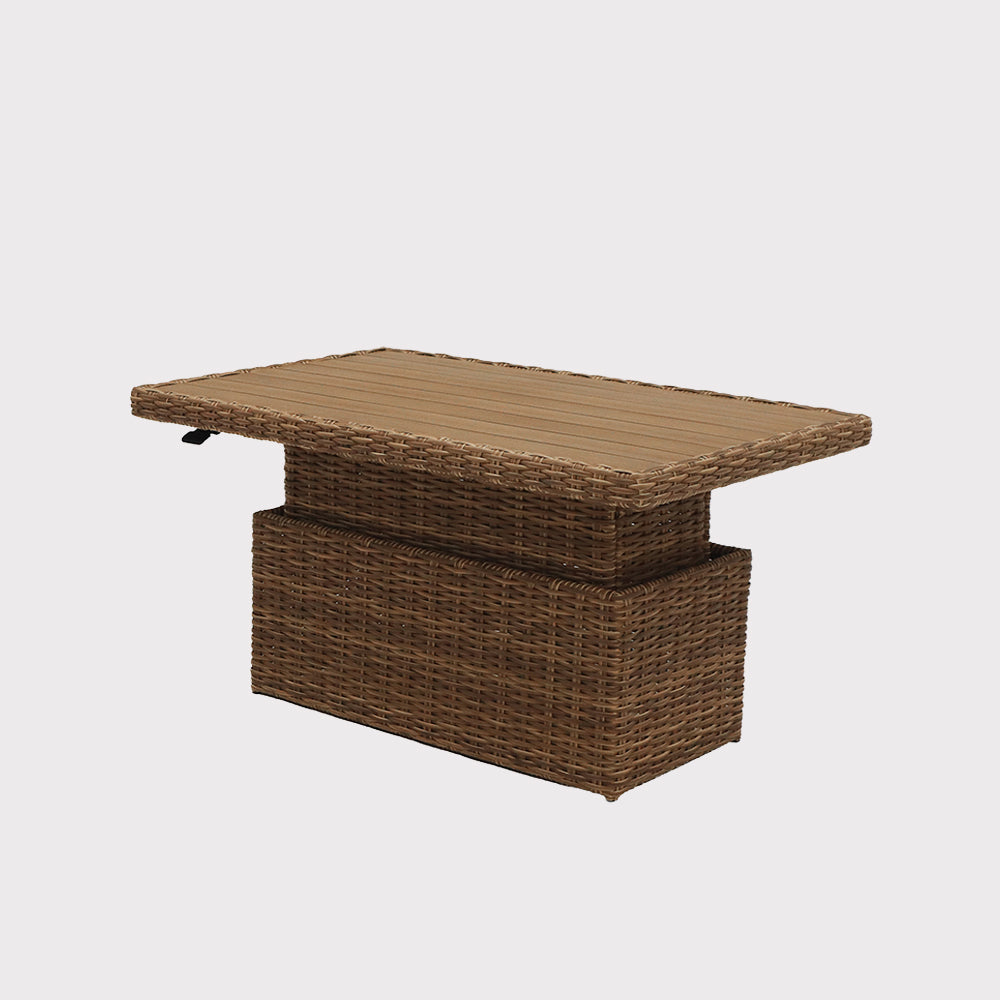 The Porto coffee garden furniture set is an elegant solution for creating a comfortable relaxation area on a terrace or in the garden. Combining a light form with a distinct character, the set blends seamlessly with both modern and more natural settings. Two comfortable sofas, including one with a practical side table, and a table with an adjustable top allow you to easily adapt the space to your daily rituals – from a quiet coffee to a larger gathering. Thick, soft cushions invite long relaxation, and the set's harmonious proportions create a cozy yet uncluttered composition. Porto furniture creates an atmosphere of relaxation and makes the garden a natural extension of your home's comfort zone.