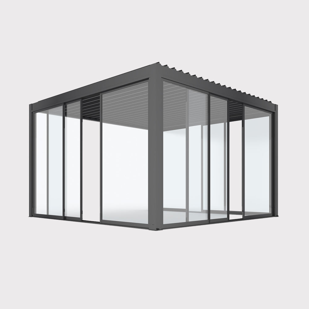 Luxe 4x4 m electric garden pergola with LED lighting