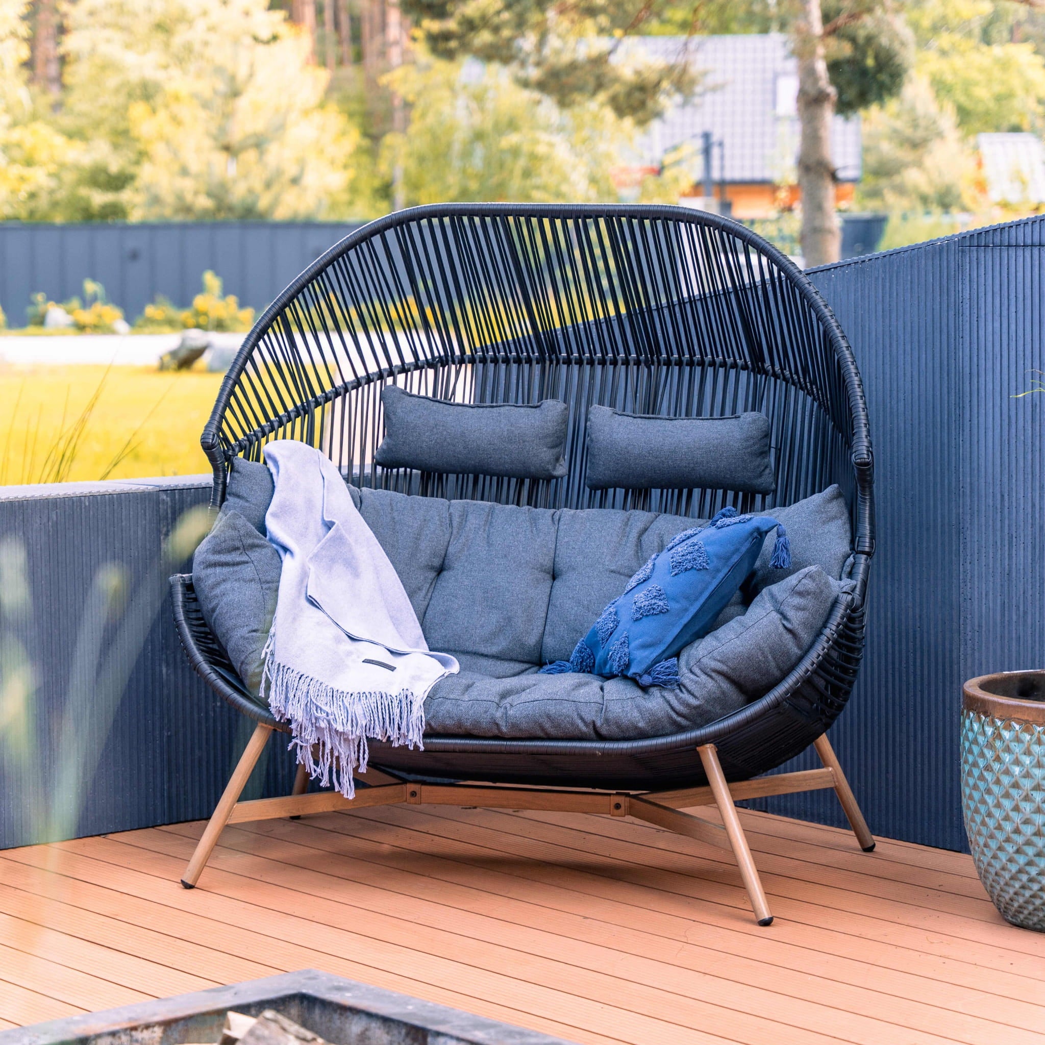 Fotel ogrodowy Holand w wersji dwuosobowej to połączenie nowoczesnego designu i pełnego komfortu. Obszerny, wyprofilowany kosz z charakterystycznym splotem pozwala swobodnie zrelaksować się w dowolnej pozycji – samodzielnie lub we dwoje. Miękka poduszka na siedzisko oraz dwie dodatkowe poduszki na oparcie wykonane ze spun poliestru zapewniają wygodę i są łatwe w utrzymaniu. Stabilna stalowa rama gwarantuje wytrzymałość, a beżowa kolorystyka i stylowy splot sprawiają, że fotel doskonale wpisuje się w najnowsze trendy aranżacyjne. To wyjątkowe miejsce wypoczynku, które podkreśli charakter tarasu, ogrodu czy nowoczesnych wnętrz.